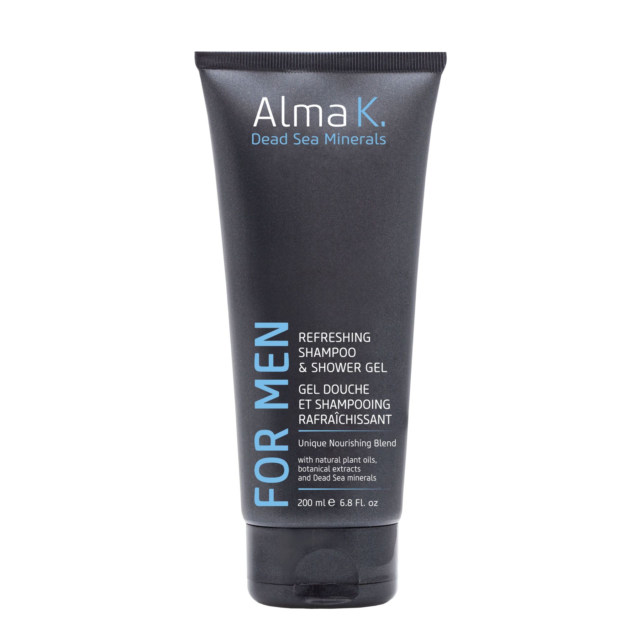 Alma K. Refreshing Shampoo and Shower Gel е универсален продукт, създаден да осигури освежаваща грижа за косата и тялото. Обогатен с минерали от Мъртво море, екстракти от зелен чай и лайка, този шампоан и душ гел нежно почиства и подхранва, оставяйки кожата и косата меки, хидратирани и освежени. Неговата богата и кремообразна текстура създава обилна пяна, която лесно премахва замърсяванията и осигурява дълготраен свеж аромат. Alma K. Refreshing Shampoo and Shower Gel е подходящ за всички типове кожа и коса, и е идеален за ежедневна употреба. Насладете се на усещане за чистота и свежест с всяко използване на този висококачествен продукт.