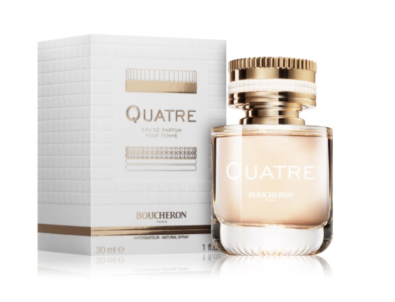 Boucheron Quatre е плодово-цветен аромат с дървесни нотки. Ароматът е пуснат на пазара през 2015 г.