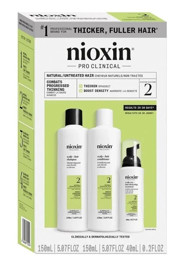 Nioxin System 2 Progressed Thinning Kit 3-стъпкова професионална система, включваща шампоан, балсам и терапия без отмиване