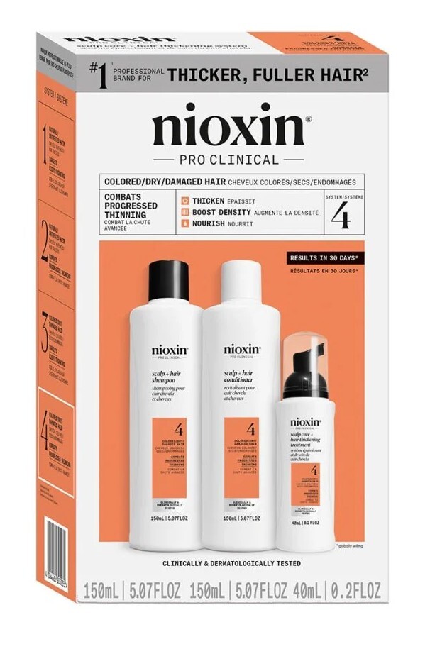 Nioxin System 4 Progressed Thinning Kit 3-стъпкова професионална система, включваща шампоан, балсам и терапия без отмиване